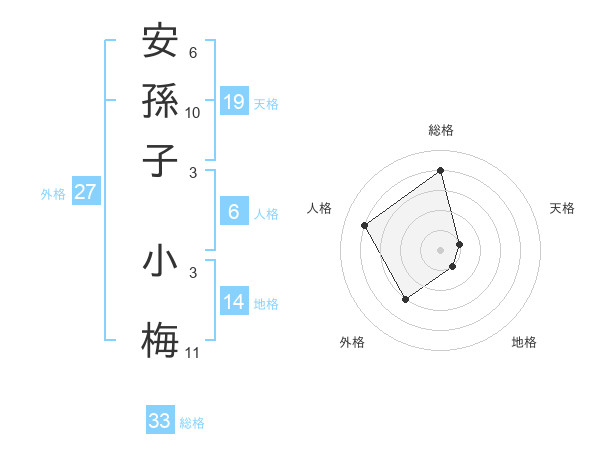 安孫子 小梅さんの総格は33画の4点!