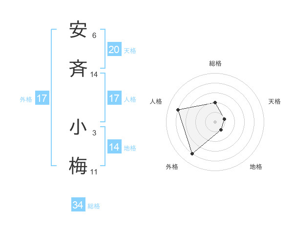 安斉 小梅さんを姓名の画数から五運を鑑定