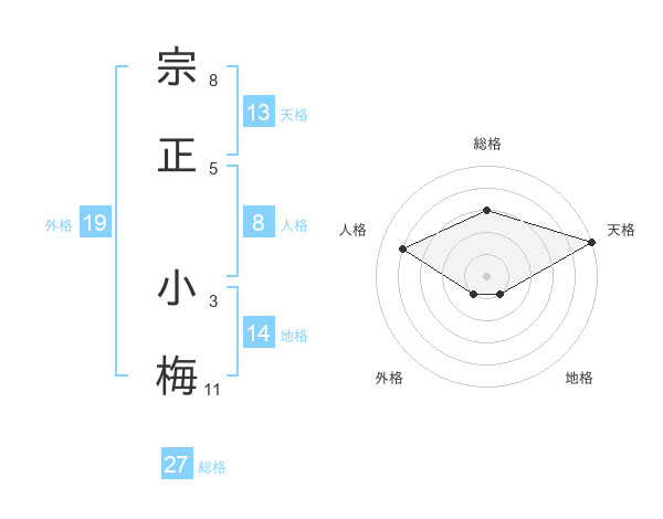 宗正 小梅さんの天格は13画の5点!
