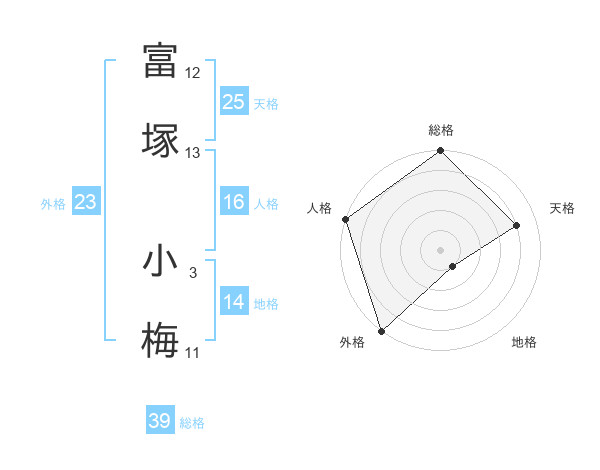 富塚 小梅さんの外格は23画の5点!