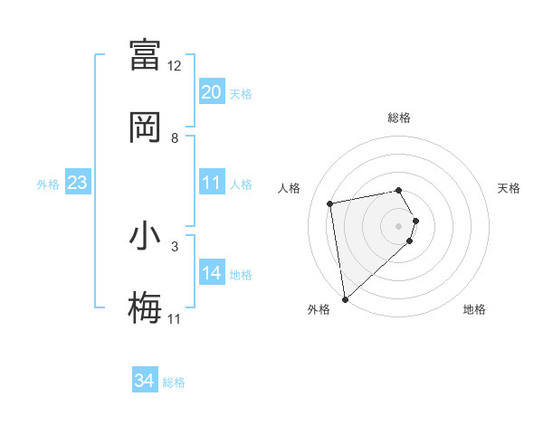富岡 小梅さんの総格は34画の2点!