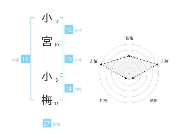 小宮 小梅さんの天格は13画の5点!