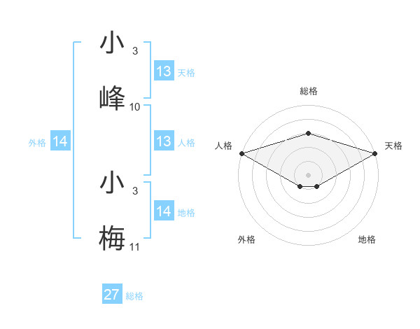 小峰 小梅さんを姓名の画数から五運を鑑定