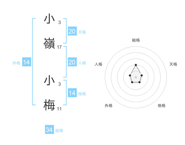 小嶺 小梅さんの総格は34画の2点!