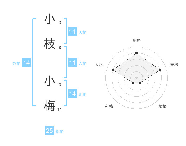 小枝 小梅さんを姓名の画数から五運を鑑定