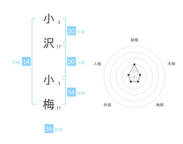小沢 小梅さんの総格は34画の2点!