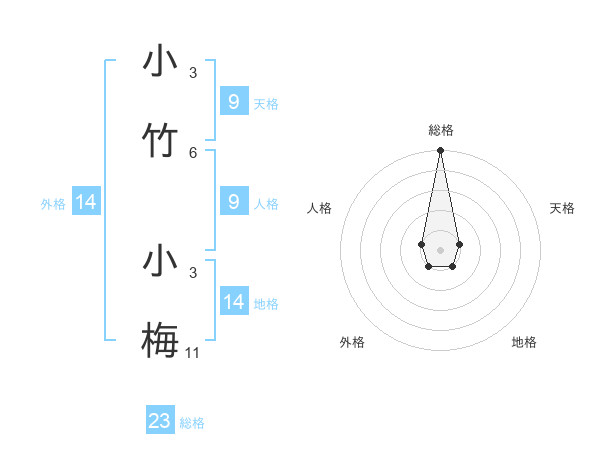 小竹 小梅さんを姓名の画数から五運を鑑定