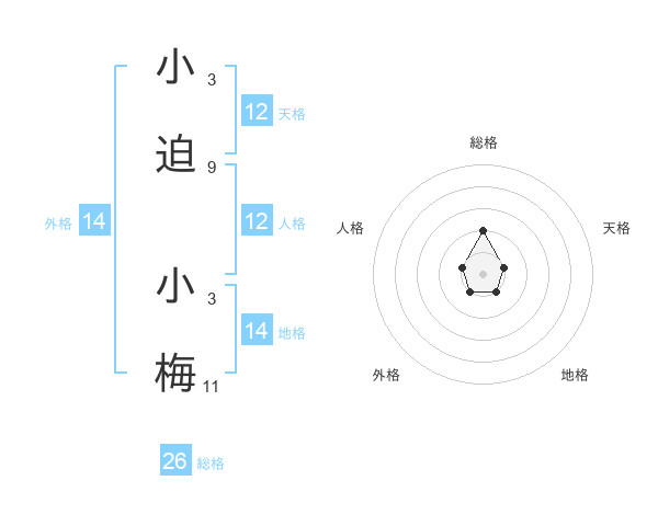 小迫 小梅さんの総格は26画の2点!