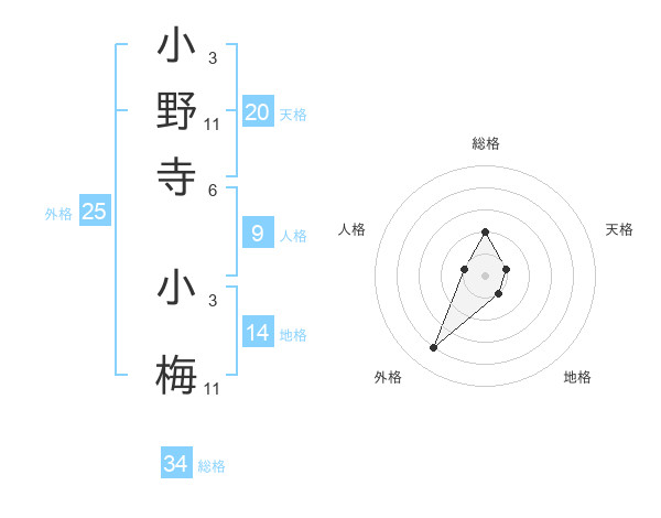小野寺 小梅さんを姓名の画数から五運を鑑定