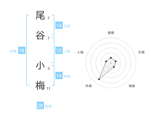 尾谷 小梅さんの総格は28画の1点!