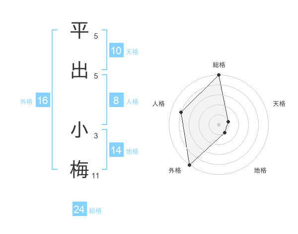 平出 小梅さんの総格は24画の5点!