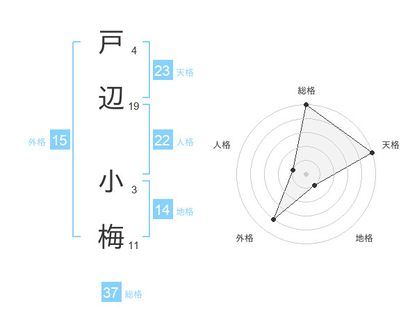 戸辺 小梅さんの総格は37画の5点!