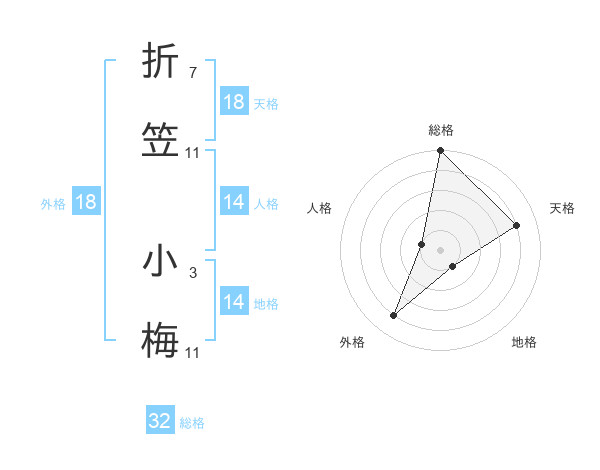 折笠 小梅さんの外格は18画の4点!