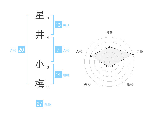 星井 小梅さんの天格は13画の5点!