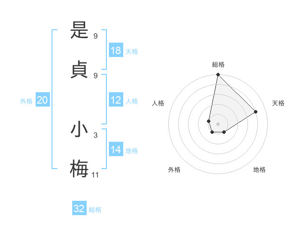 是貞 小梅さんの天格は18画の4点!