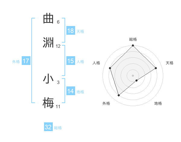 曲淵 小梅さんを姓名の画数から五運を鑑定