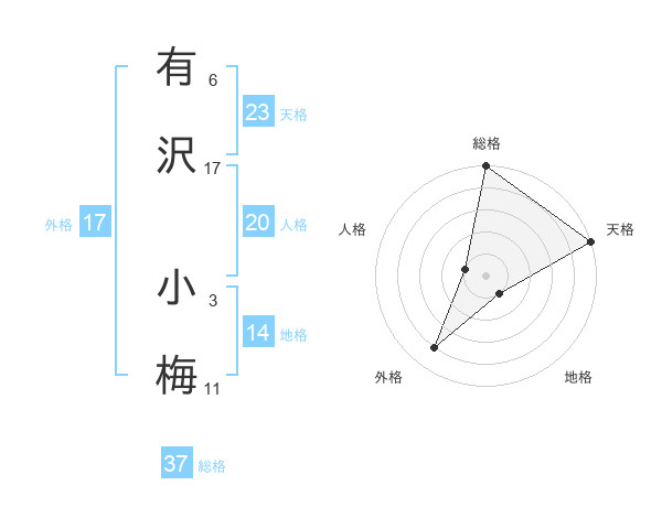 有沢 小梅さんを姓名の画数から五運を鑑定