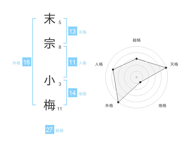 末宗 小梅さんの外格は16画の5点!