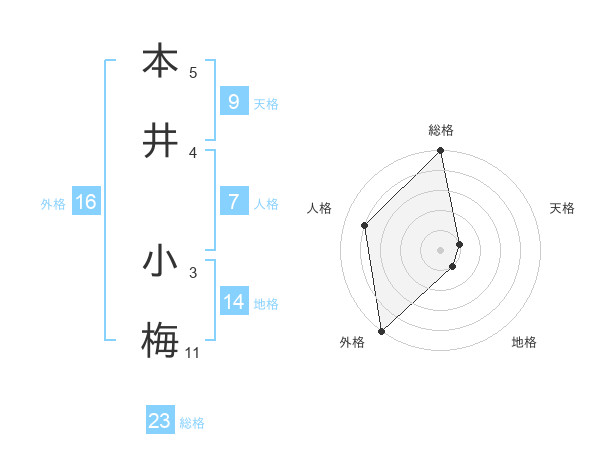 本井 小梅さんの総格は23画の5点!