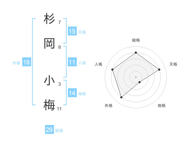 杉岡 小梅さんの総格は29画の4点!