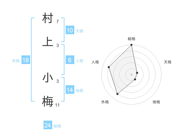 村上 小梅さんの総格は24画の5点!