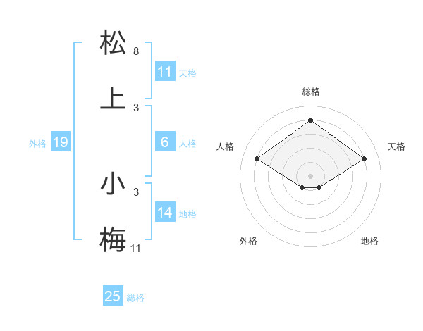 松上 小梅さんの総格は25画の4点!