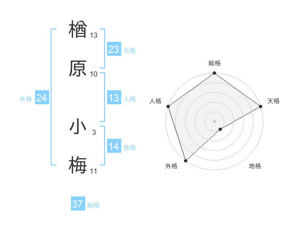 楢原 小梅さんの総格は37画の5点!