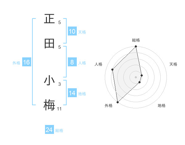 正田 小梅さんの総格は24画の5点!