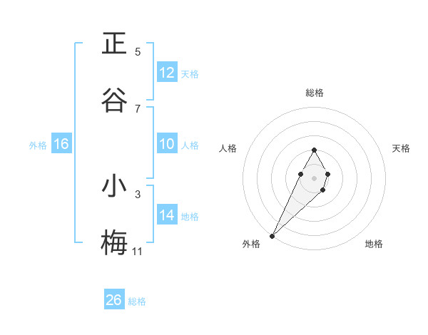 正谷 小梅さんの外格は16画の5点!