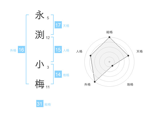 永渕 小梅さんを姓名の画数から五運を鑑定