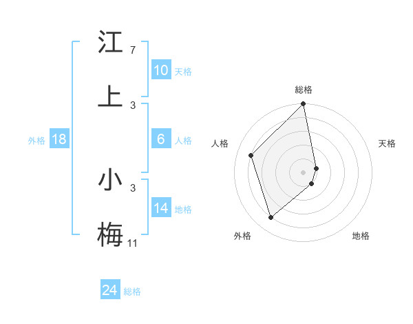 江上 小梅さんの総格は24画の5点!