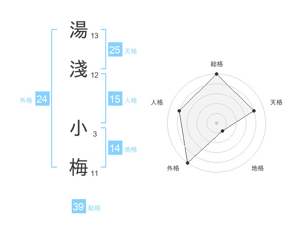 湯淺 小梅さんを姓名の画数から五運を鑑定