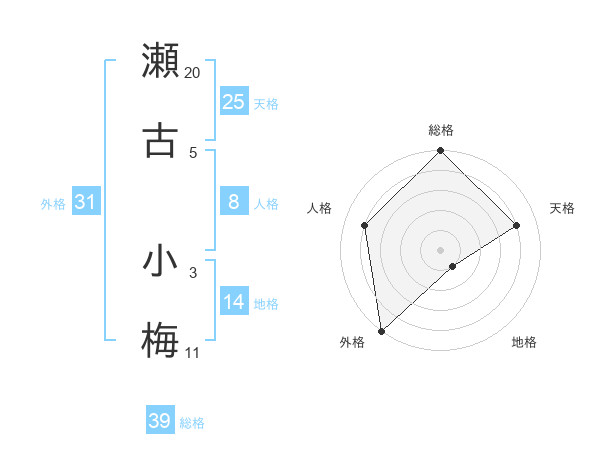 瀬古 小梅さんの外格は31画の5点!
