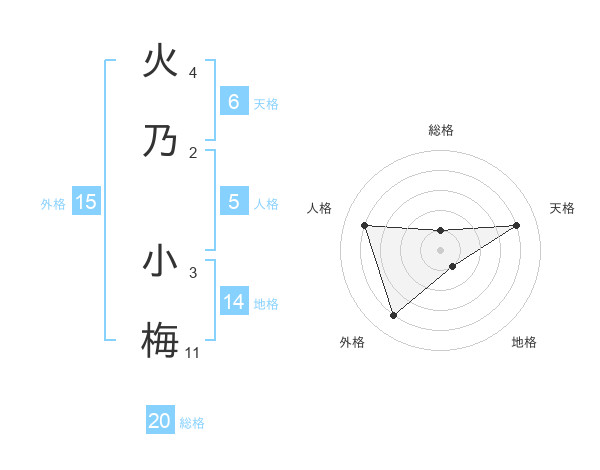火乃 小梅さんの総格は20画の1点!