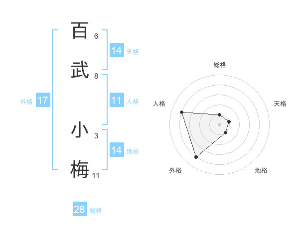 百武 小梅さんの外格は17画の4点!