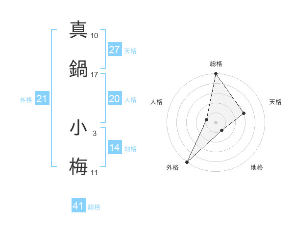 真鍋 小梅さんの総格は41画の5点!