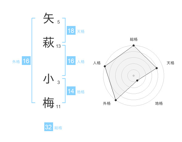 矢萩 小梅さんの天格は18画の4点!