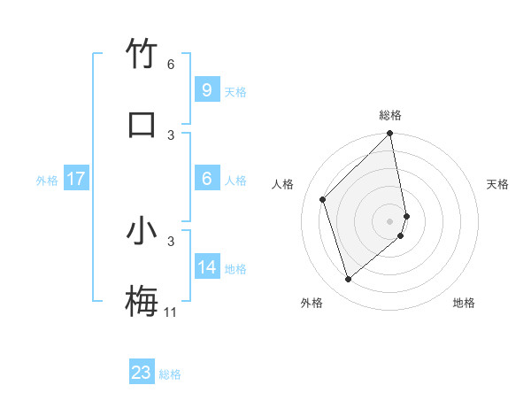 竹口 小梅さんの総格は23画の5点!