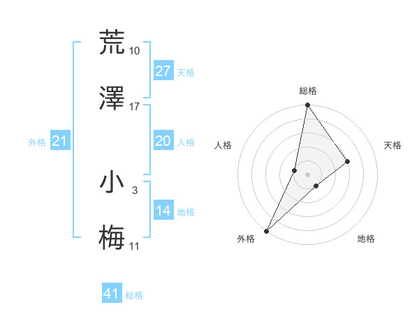 荒澤 小梅さんの総格は41画の5点!