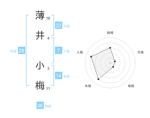 薄井 小梅さんの外格は29画の4点!
