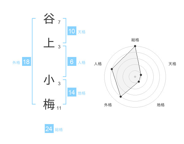 谷上 小梅さんを姓名の画数から五運を鑑定