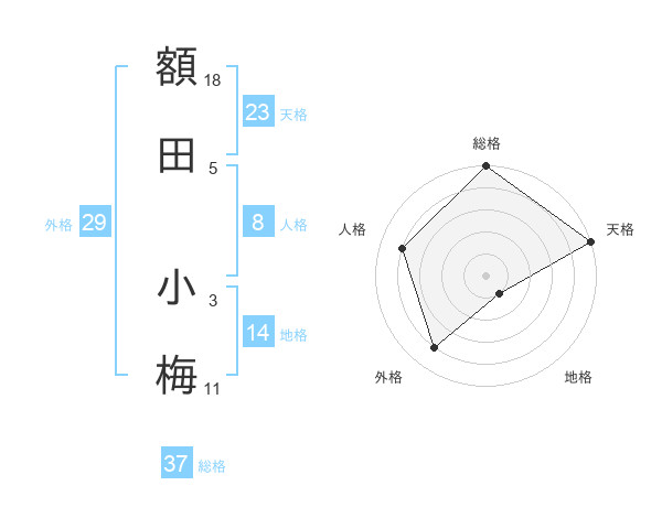 額田 小梅さんの天格は23画の5点!