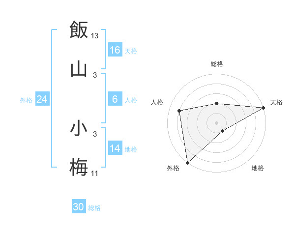 飯山 小梅さんの総格は30画の2点!