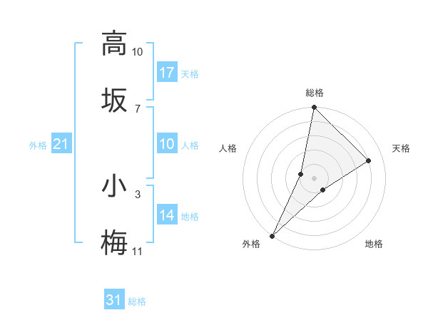 高坂 小梅さんの総格は31画の5点!