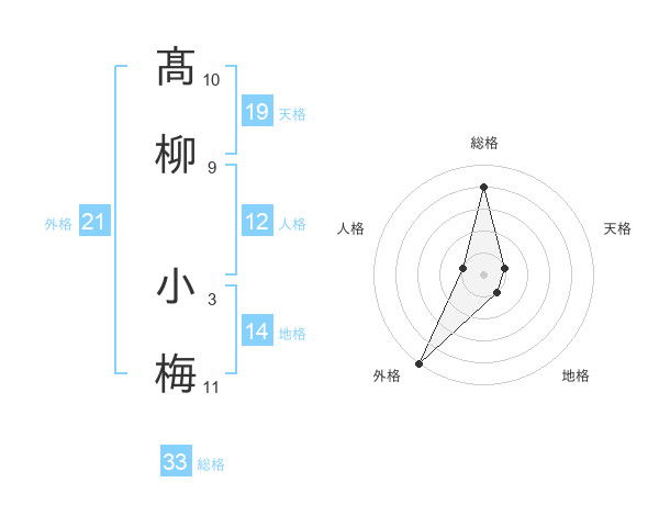 髙柳 小梅さんの総格は33画の4点!