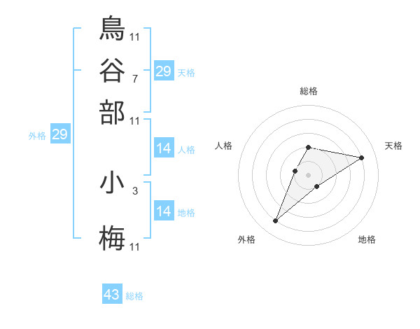 鳥谷部 小梅さんを姓名の画数から五運を鑑定