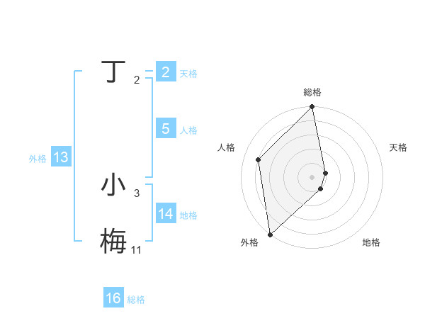 丁 小梅さんの総格は16画の5点!