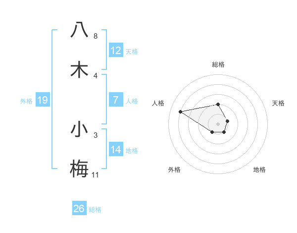 八木 小梅さんの総格は26画の2点