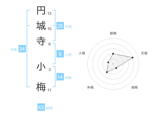 円城寺 小梅さんの総格は43画の2点!