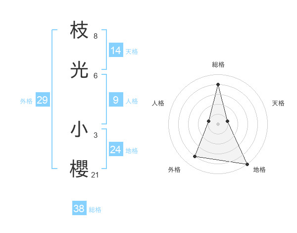 枝光 小櫻さんの総格は38画の4点!